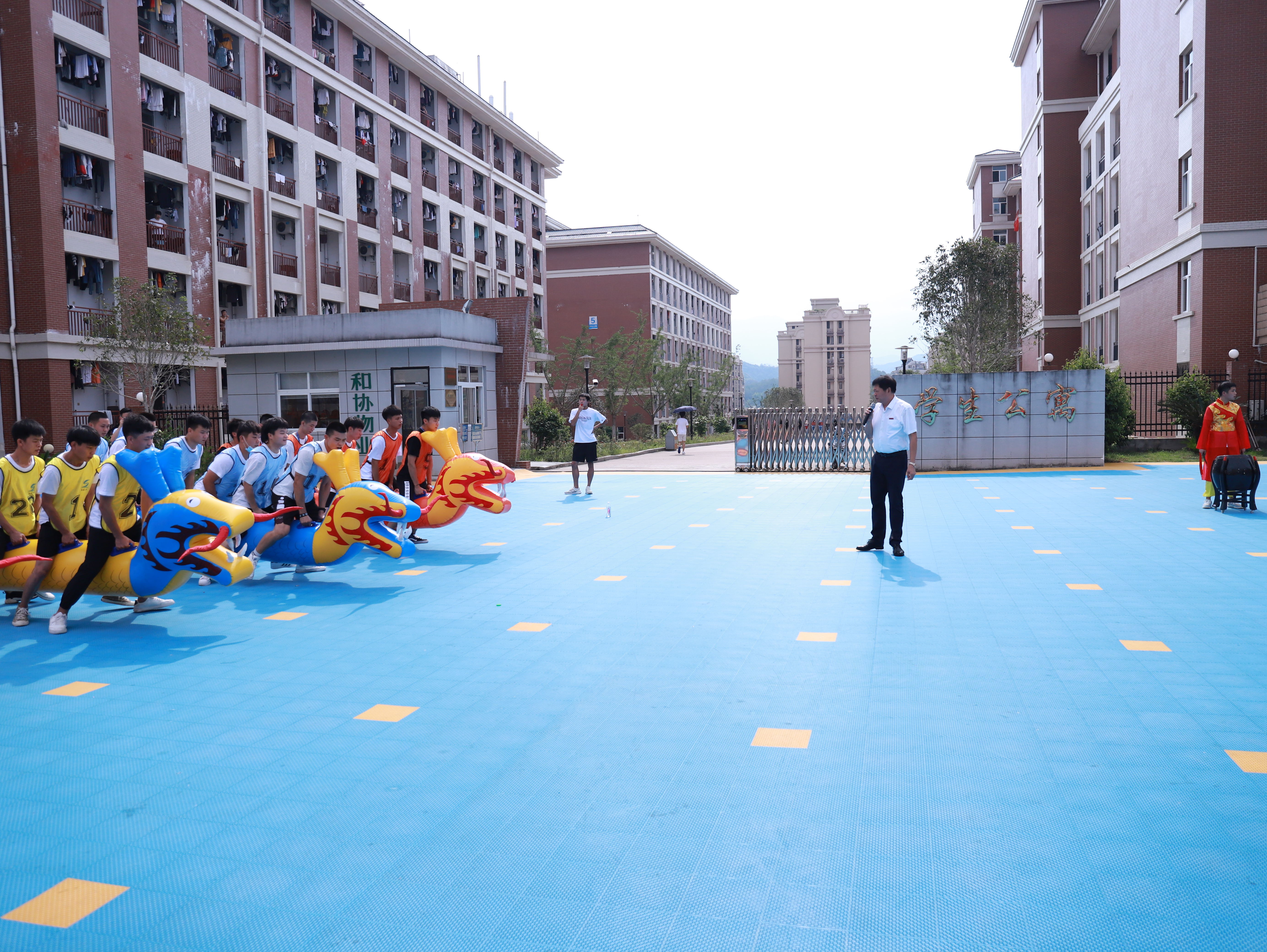 党委书记庄伟廉、院长杨元挺在活动现场为同学们佩戴平安蛋、沐兰汤、点雄黄,寄语同学们要坚持文化自信,常怀敬爱之心和珍爱之情,过好中华民族的每一个传统佳节,努力成为新时代传统文化的继承者和传承者。庄伟廉在现场暖心地说道:“端午节是中国首个入选世界非物质文化遗产的节日,但今年的端午注定与众不同,在特殊的疫情期间,同学们齐聚校园,学校就是你们的家,你们今天可以尽情地放‘粽’一夏,包粽子、做香囊、划龙舟,就像在自己家里过节一样。”