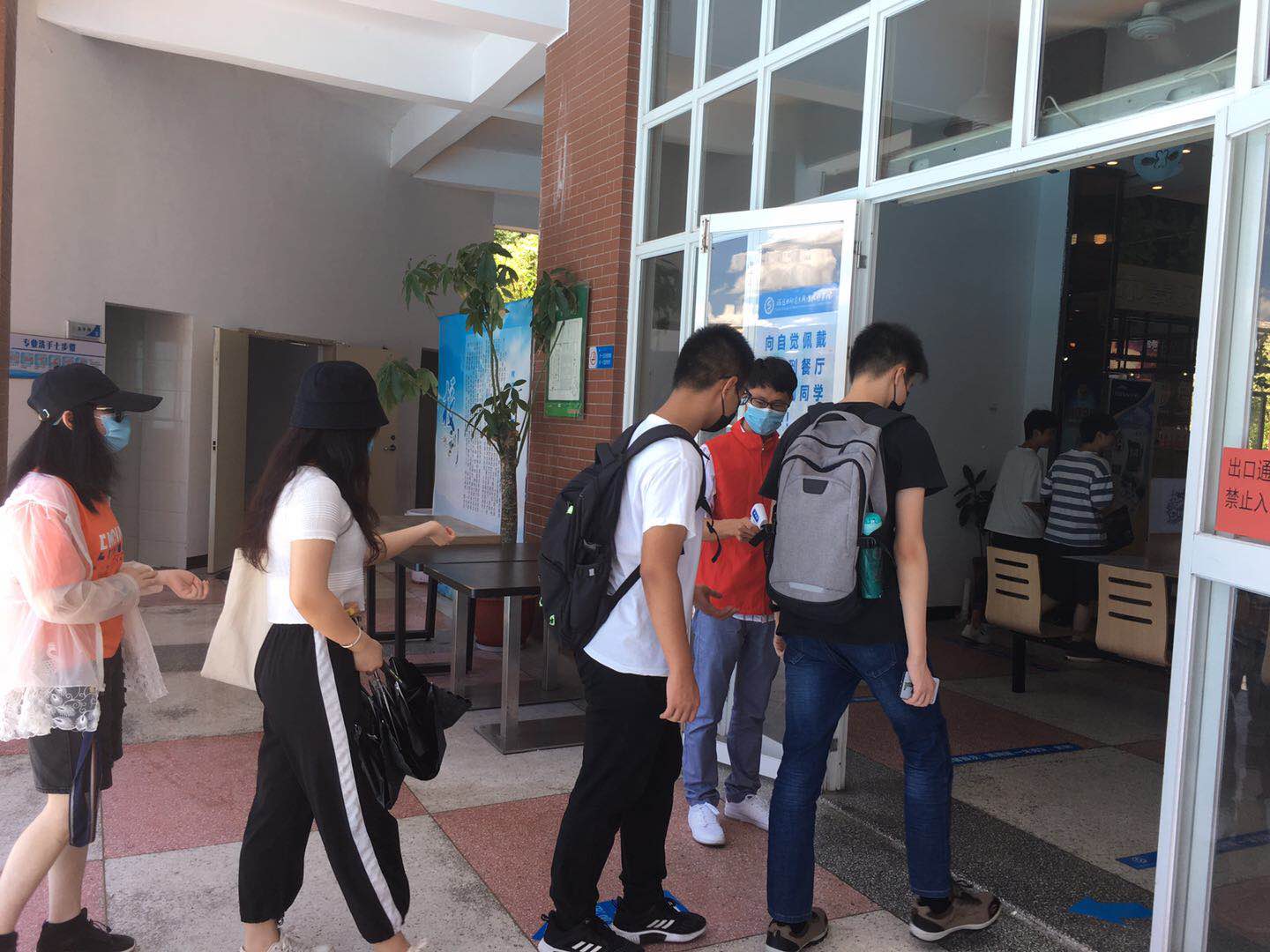 中午,支部党员分工分组在学院各学生食堂引导学生错峰用餐,做好秩序维持,倡导文明就餐,为学生们安全用餐保驾护航。志愿者们统一佩戴工作牌,身穿红色系服,有的测量体温,有的负责引导提醒师生们取餐时佩戴口罩,有序排队,保持一米的距离。他们用饱满的热情呼吁每一位进入食堂用餐的同学“文明就餐,从我做起”。