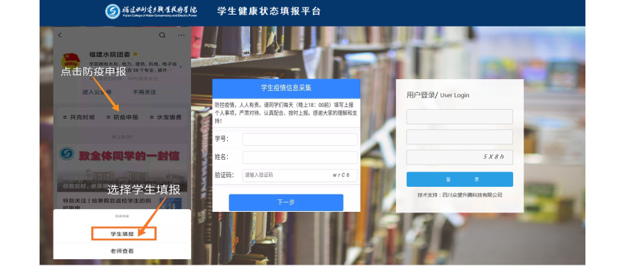 “疫”不容辞,确保信息摸排及时准确。疫情防控工作开始以来,学生工作处、团委利用网络平台,加强信息共享,强化部门联动,全方位阻击疫情,形成“院、系部、辅导员、班干部”的工作体系,实现信息摸排“一对一、键对键、全天候、零距离”的网格模式,全面做好学生动态掌控、疫情温馨提示、防控知识宣传及心理疏导等工作,确保措施落实到位,责任落实到人,信息及时准确。此外,积极搭建起 “学生疫情信息采集平台”,每天按时采集上报各种统计数据信息,实时掌握学生动态,有效地为学院疫情防控工作决策提供依据。