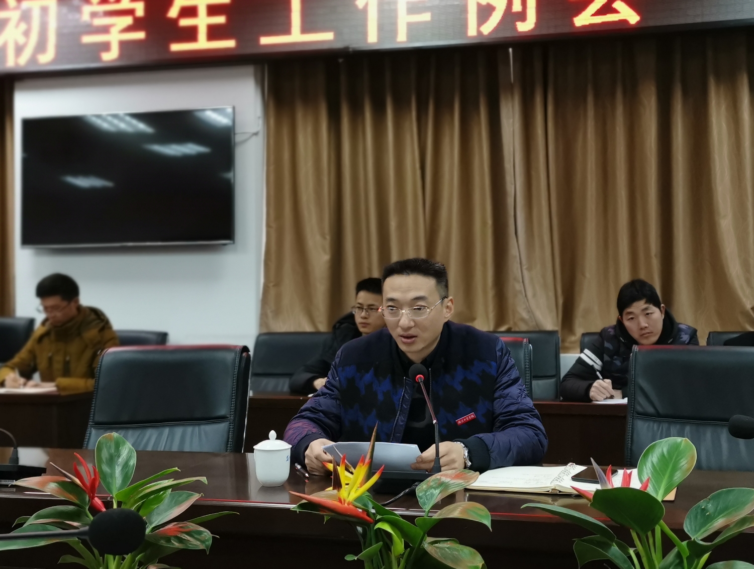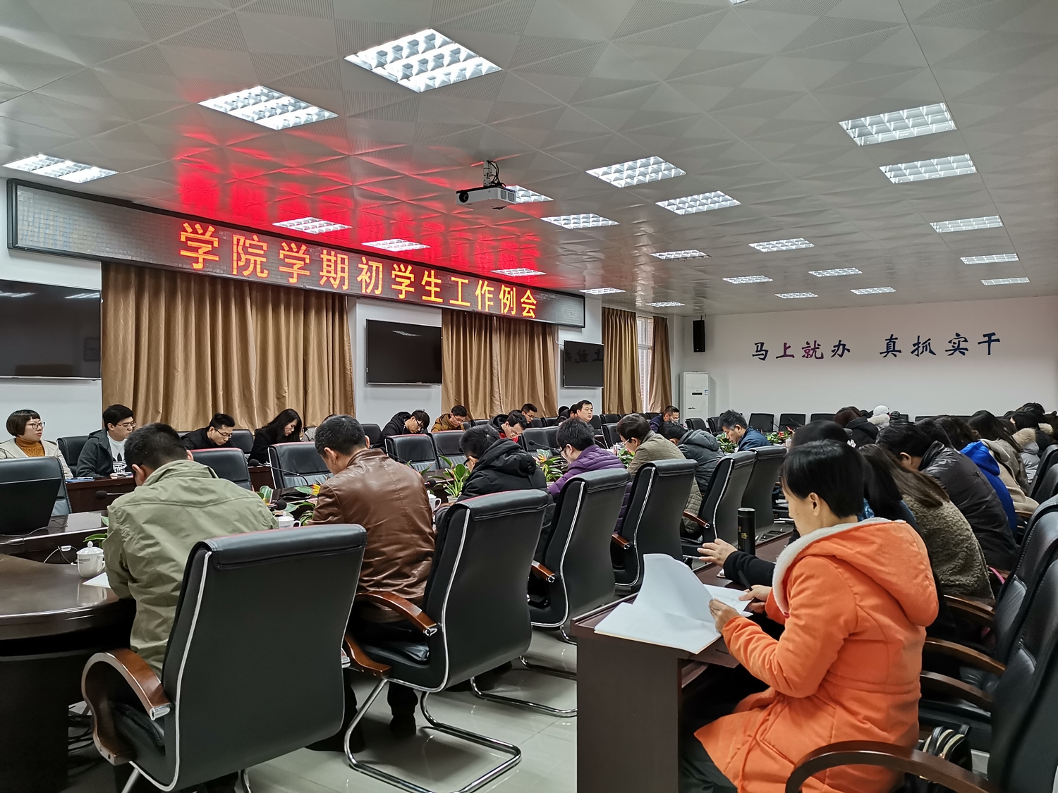 2月25日下午,学院召开2019年新学期初学生工作例会。副院长杨武盖出席会议并讲话,学生工作处(团委)、保卫处、后勤处、各系部党团总支书记、全体专职辅导员参加了会议。