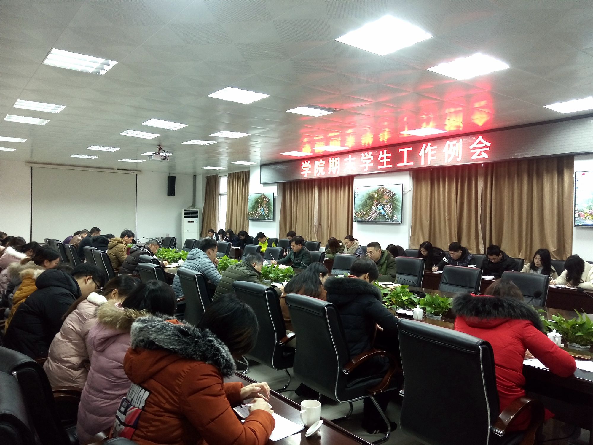 1月2日下午,学院在禹兴园1-506召开了期末学生工作管理会议,学院副院长杨武盖,学生工作处(团委)、保卫处、后勤处、各系部党团总支书记、全体专职辅导员参加了会议。