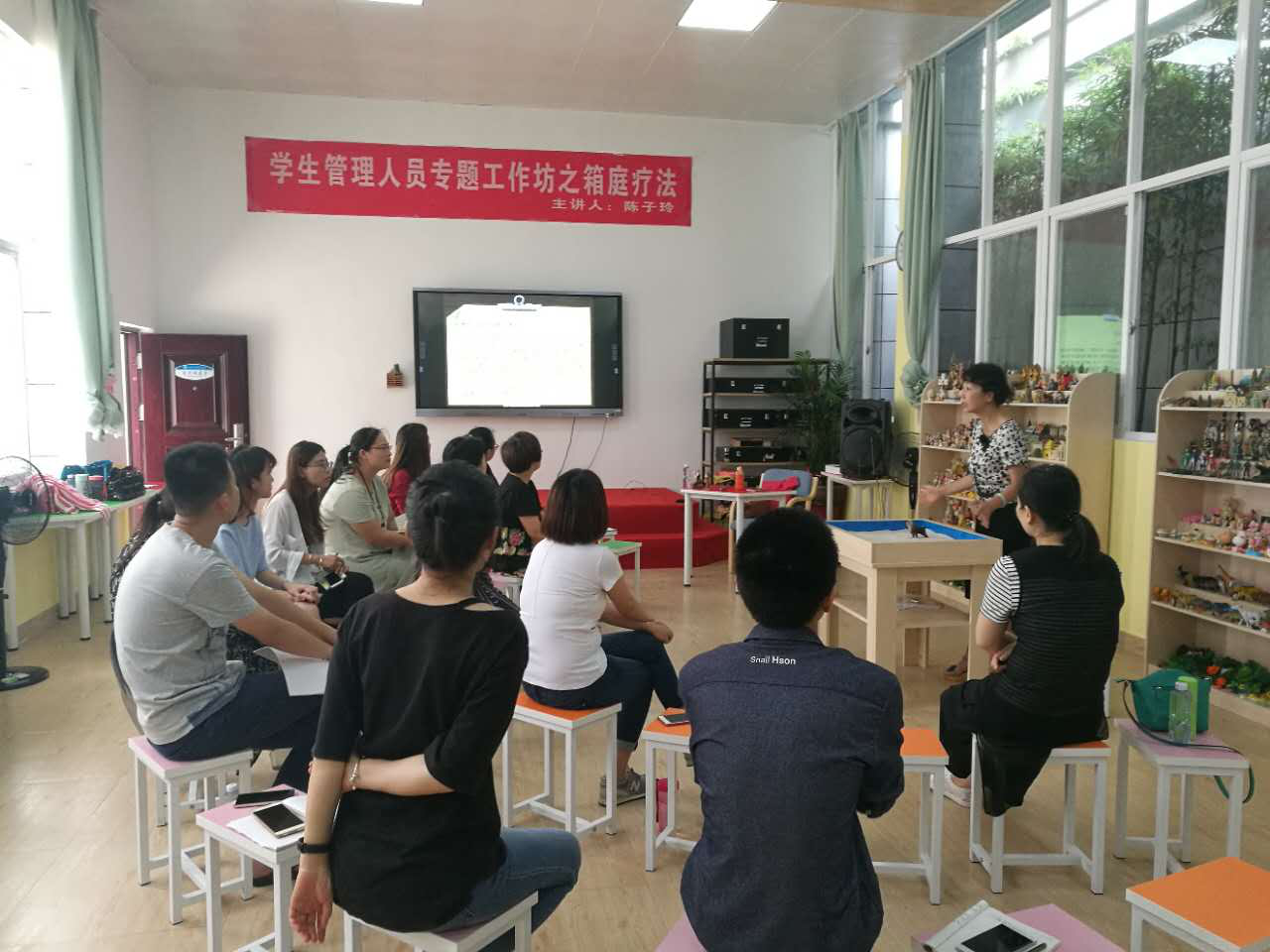 6月22至23日,我院开展了为期二天的学生管理人员专题工作坊之箱庭疗法技术培训。本次培训由学生工作处主办、心理发展服务中心承办,邀请了国家二级心理咨询师,福建省心理咨询与健康教育研究会副会长,福建省心理卫生协会理事,福建省青年创业基金会副秘书长,三明市心理学会常务理事、副秘书长,三明市心理咨询师协会副会长兼秘书长——陈子玲老师进行专业技能授课,各系的专职辅导员,学生工作处的相关人员参加了此次学习。