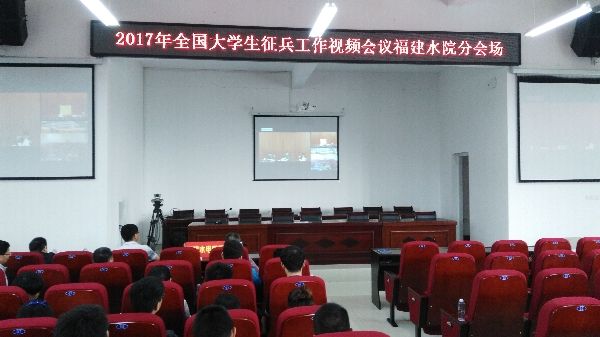4月26日上午,教育部、中央军委国防部动员部在京联合召开全国大学生征兵工作网络视频会议,对2017年大学生征兵工作进行全面部署,会议在我院学术报告厅设分会场,我院院长杨元挺老师,永安市武装部副部长韩显刚,党工部、办公室、计财处、教务处、学工处、团委、招就办、资助中心、各系党团总支相关负责人,学院征兵办公室有关人员以及2017届毕业班全体专兼职辅导员参加了视频会议。