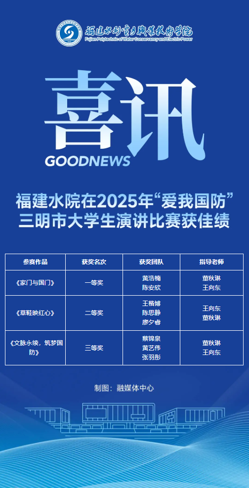 本次比赛中,参赛选手紧扣赛事主题,生动讲述三明红色历史与抗战故事,以富有感染力的表达展现了水院学子昂扬向上的精神风貌与报国担当。此次获奖是学校推动国防教育与思政育人融合的生动体现,学校将持续深化国防教育,激励广大青年用青春之声传递国防力量,以实际行动践行报国初心。