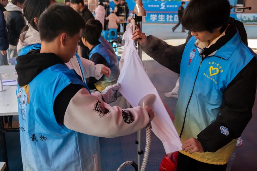 同学们自主运营的服务驿站,熨烫衣物、迎春送联、最美证件照……展示了同学十八般武艺的生活技能,让社区充满了温暖和幸福感。
