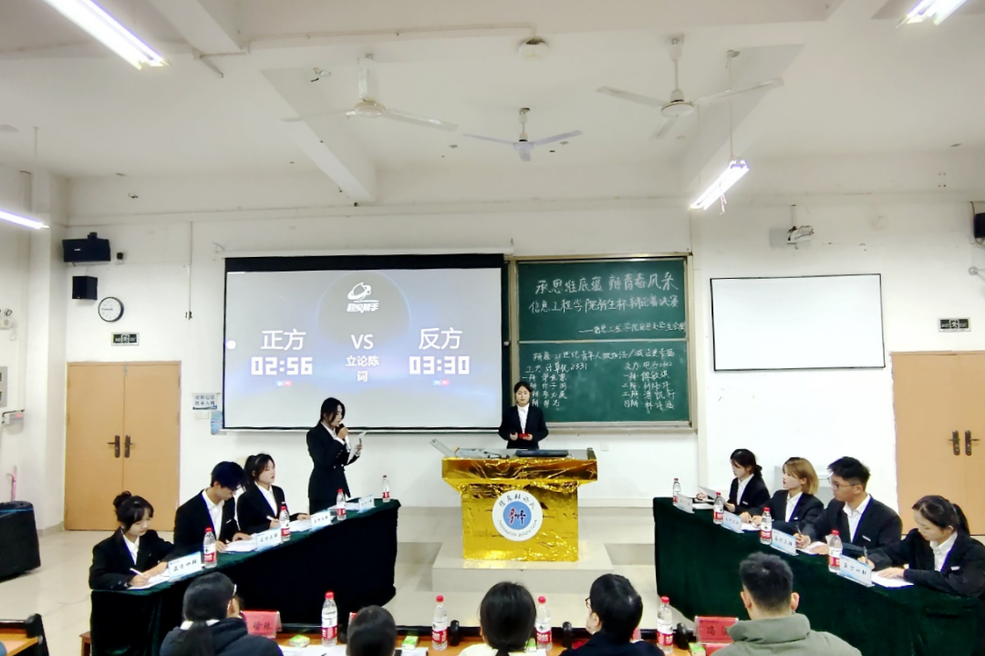 为培养同学们的语言表达和逻辑思辨能力,助力形成良好的校园思辨氛围,信息工程学院于12月18日晚上19:00禹兴园3-208隆重举行了新生杯辩论赛决赛。