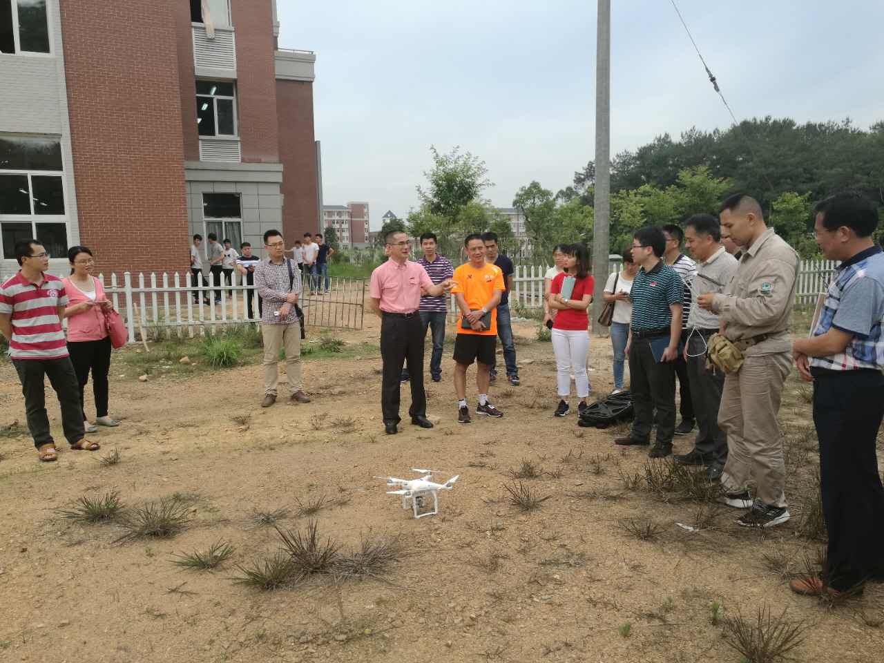 会前,供电局王技术员先带大家在楼下草坪上演示无人机运行和检测线路情况,只需要在操作界面上控制,无人机即可在方圆几公里内飞行并航拍线路情况,几分钟内,几个山头上的线路情况净收眼底,无人机的方便快捷给参会的领导和老师留下了深刻印象。
