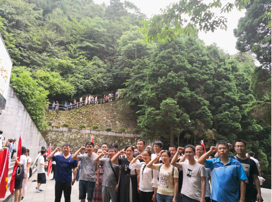 在井冈山烈士陵园,大家真切体会了革命斗争中壮烈牺牲的烈士们的光辉业绩和无私奉献精神,面对无数牺牲的革命烈士,在党总支书记朱庆喜老师的带领下,全体党员同志重温了入党誓词,铿锵有力的誓言,透露着广大党员对党的热爱与忠诚。
