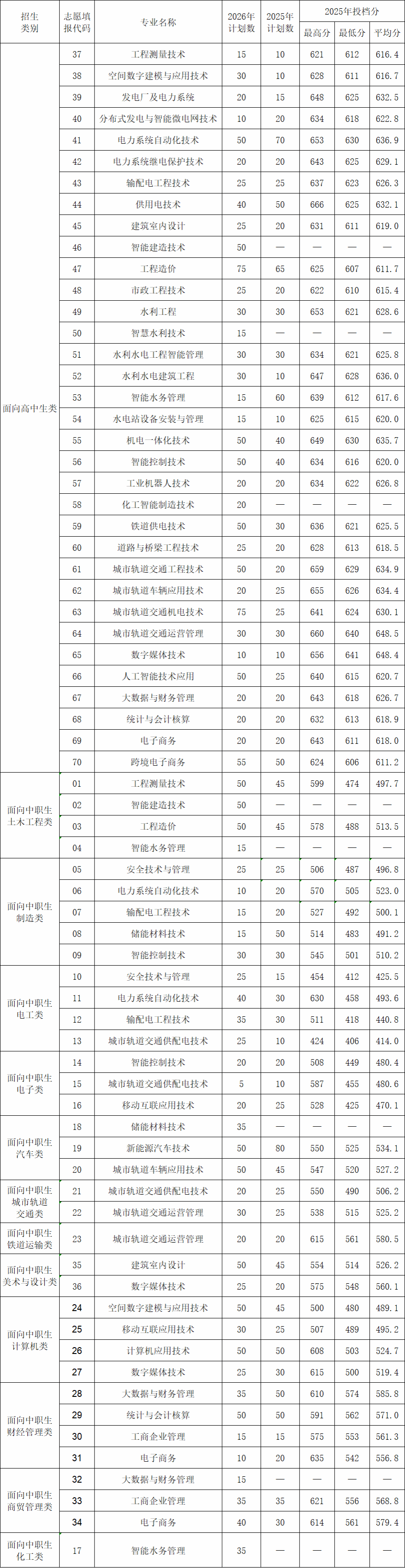 福建水利电力职业技术学院2026高职分类招考批招生计划及志愿填报代码