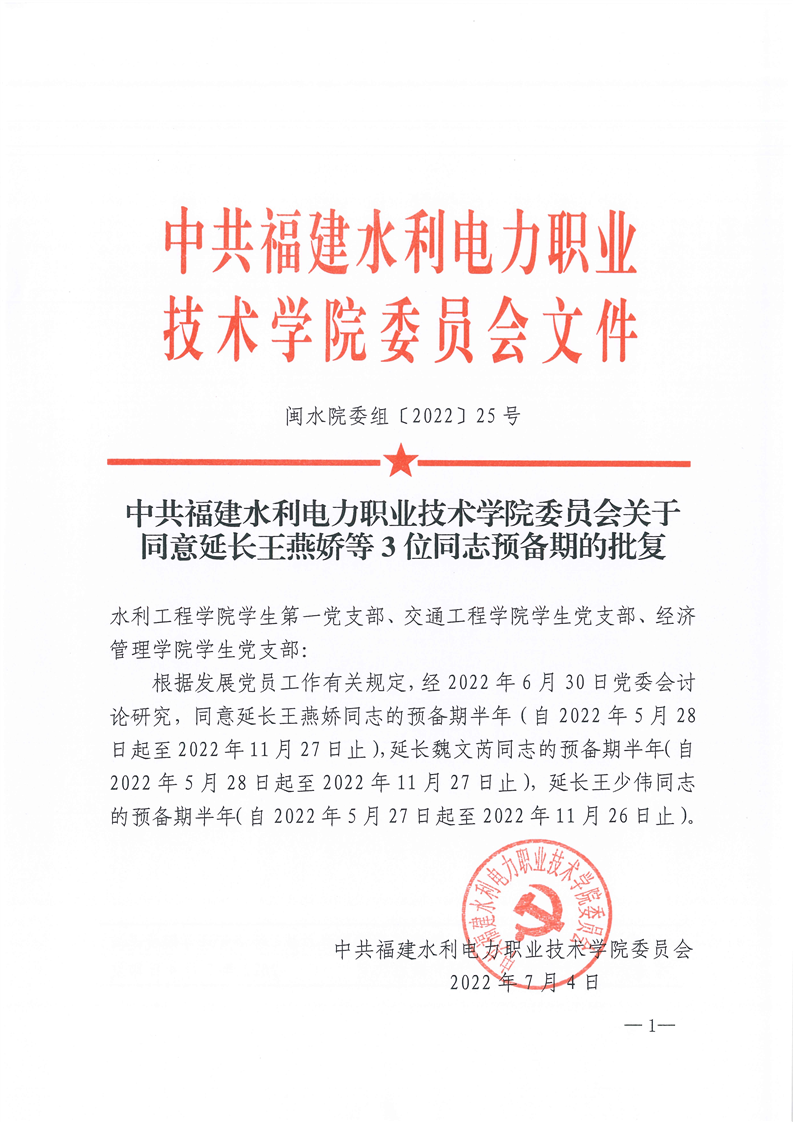 关于同意延长王燕娇等3位同志预备期的批复